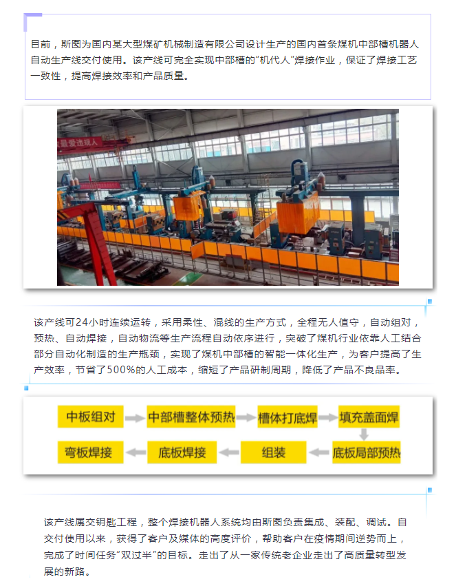 斯圖|國(guó)內(nèi)首條煤機(jī)中部槽機(jī)器人自動(dòng)生產(chǎn)線成功交付啦