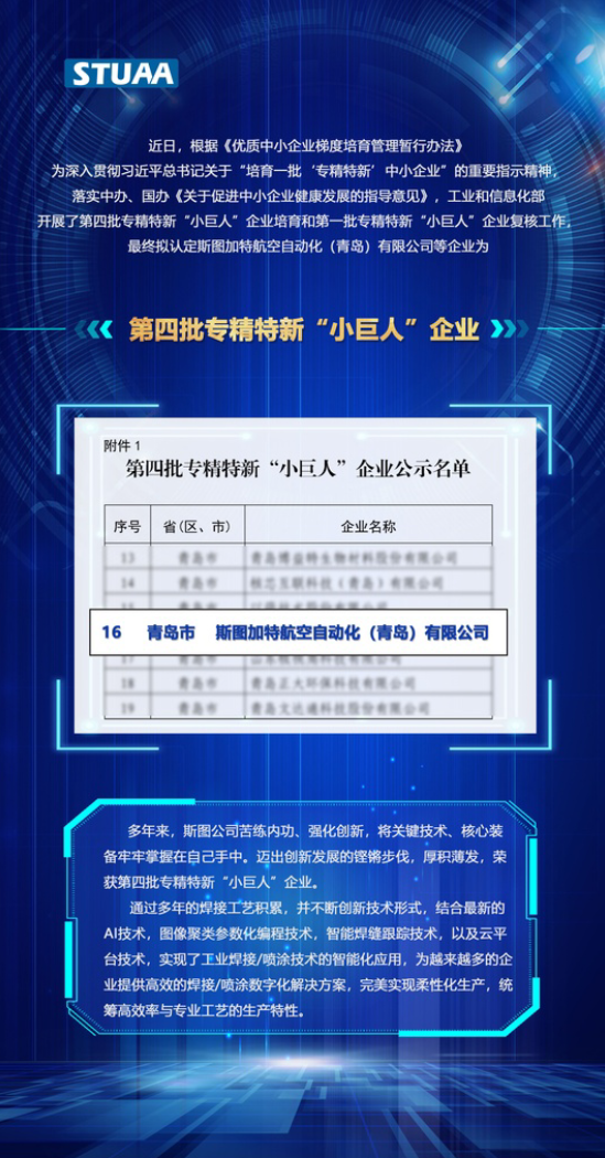 斯圖榮獲國(guó)家專(zhuān)精特新“小巨人”企業(yè),引領(lǐng)智能制造!