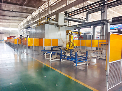 叉車槽鋼生產(chǎn)線集成了通過式拋丸、機(jī)加工、軸頭自動拼點(diǎn)及焊接等工序,可將定尺的槽鋼原材料制造成應(yīng)用于叉車內(nèi)、中、外門架的槽鋼總成。本產(chǎn)線內(nèi)工件在各個(gè)工序均為自動化流轉(zhuǎn),且線端和線尾也通過搬運(yùn)機(jī)器人配合AGV完成原材料和成品的自動化轉(zhuǎn)運(yùn),真正實(shí)現(xiàn)了整線的無人化運(yùn)行,為用戶提高了生產(chǎn)效率、提升了產(chǎn)品質(zhì)量、降低了人力成本,獲得了客戶廣泛的認(rèn)可和好評。
